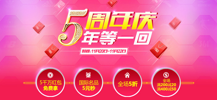 與此同時,為了感謝新老顧客五年來的支持,淘鞋網(wǎng)在本次周年慶期間推出了盛大的感恩回饋活動。(包括:5000萬紅包大放送,國際名品5元秒,超人氣爆款5折封頂、全場滿減等強(qiáng)力度活動。)