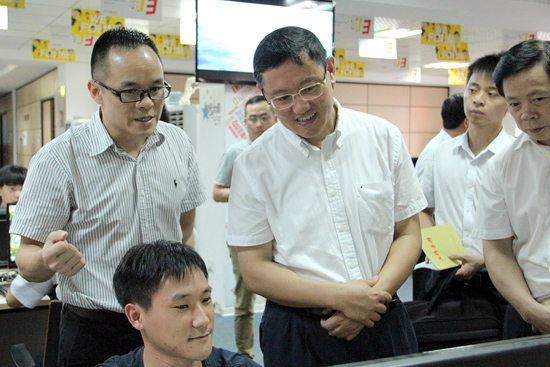 2015年8月19日下午,福建省委組織部常務副部長、非公企業(yè)黨工委書記袁毅,在中共泉州市委常委、組織部長陳沈陽,泉州市委組織部副部長張翼翔,豐澤區(qū)人民政府區(qū)長朱啟平,豐澤區(qū)委組織部長駱紅,領SHOW天地黨委書記鄭巍萍陪同下,蒞臨了訊網科技參觀考察。