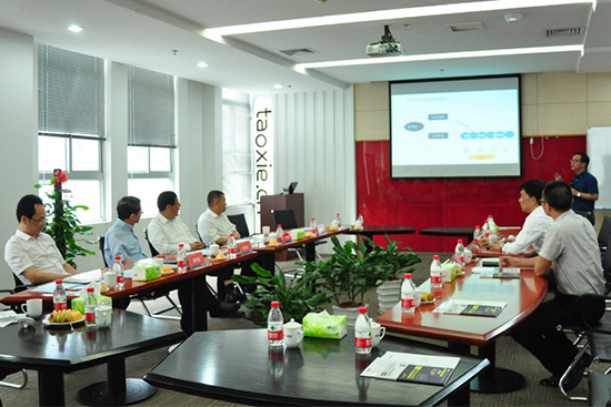 馬培華一行深入淘鞋網運營團隊辦公現場,聽取了王冬竹董事長就淘鞋網業務體系、電商人才培養和成果轉化的匯報,饒有興致地觀看了淘鞋網銷售訂單下達的演示系統,并不時詢問運營難點與應用前景。在隨后舉行的座談會上,王冬竹董事長對馬培華一行到訪表示歡迎。