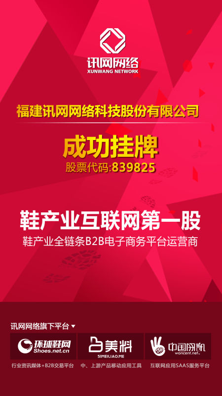 此次訊網(wǎng)網(wǎng)絡(luò)掛牌,正式成為國(guó)內(nèi)鞋產(chǎn)業(yè)互聯(lián)網(wǎng)“第一股”,彰顯了公司作為鞋行業(yè)互聯(lián)網(wǎng)資訊第一平臺(tái)、B2B在線(xiàn)交易領(lǐng)先平臺(tái)的行業(yè)地位。下一步,公司將利用供給側(cè)改革、制造升級(jí)、B2B電商風(fēng)口等發(fā)展機(jī)遇,以“經(jīng)緯鑄球,閉環(huán)生態(tài)”為業(yè)務(wù)架構(gòu),打通鞋行業(yè)上中下游企業(yè)及產(chǎn)品這一用戶(hù)“經(jīng)線(xiàn)”,建立企業(yè)專(zhuān)業(yè)資訊、在線(xiàn)交易、供應(yīng)鏈金融、數(shù)據(jù)服務(wù)這一業(yè)務(wù)“緯線(xiàn)”,開(kāi)放聯(lián)結(jié),構(gòu)建起連接鞋企一切互聯(lián)網(wǎng)需求的電商生態(tài)圈。
