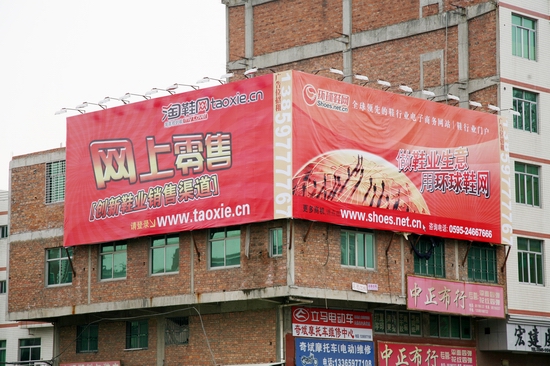 為擴大環(huán)球鞋網(wǎng)和淘鞋網(wǎng)的品牌知名度,讓更多人了解環(huán)球鞋網(wǎng)和淘鞋網(wǎng),繼晉江主要路段投放20多面廣告后,公司在晉江鞋都又投放了兩塊大型廣告牌。