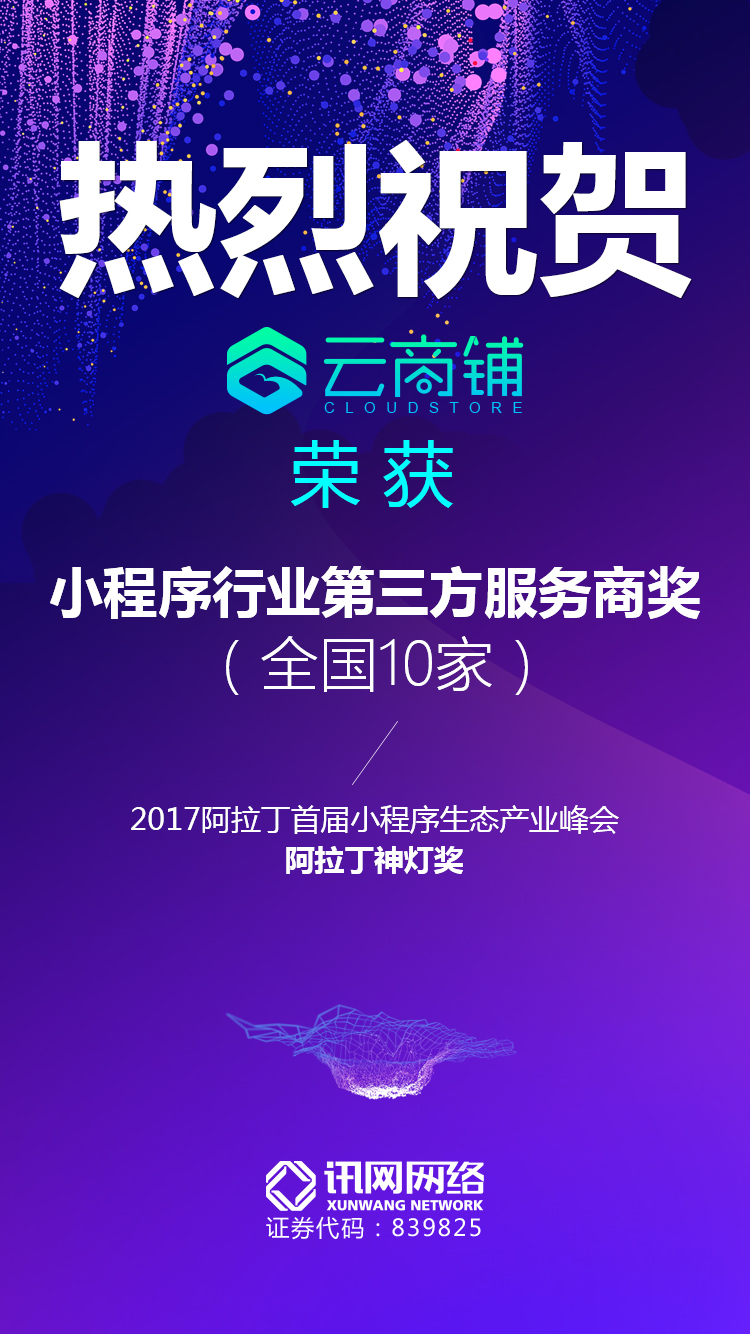 小程序經過近一年的沉淀,市場趨于穩定,作為一個新物種,推動新的商業革命,成為下一個風口,成為鏈接生活的無限可能,成為無可阻擋的新勢力。此次峰會齊聚2000多名小程序相關行業人士,同時首份最權威的小程序行業白皮書發布,小程序行業份量最重的獎項評選現場頒出。訊網網絡旗下的服務品牌---云商鋪榮獲“小程序行業第三方服務商獎(全國10家)”。