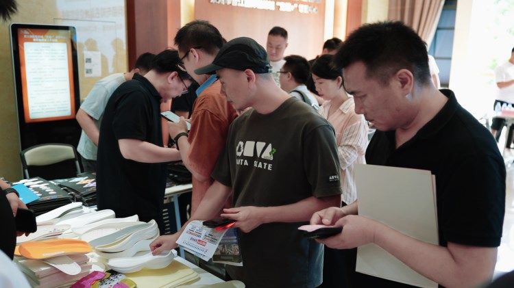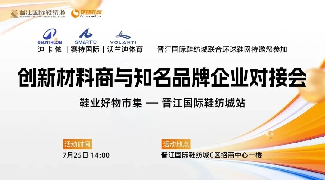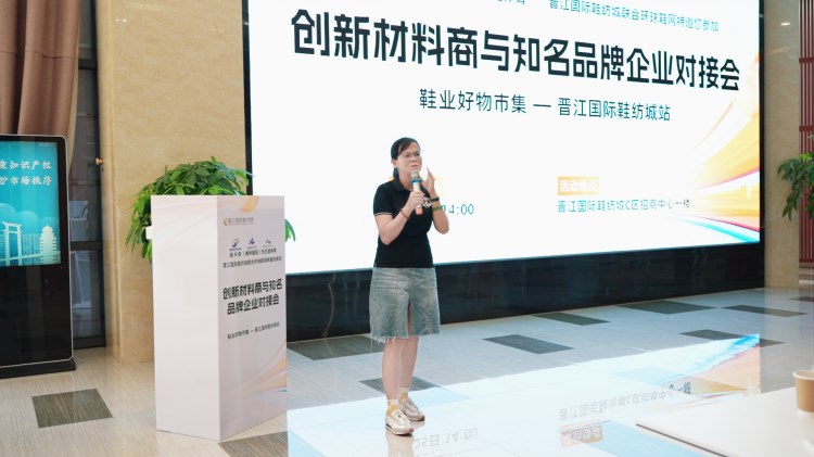 “創(chuàng)新材料商與知名品牌對接會暨鞋業(yè)好物市集第二站-晉江國際鞋紡城站”(以下簡稱“對接會”)于晉江國際鞋紡城舉辦,本場對接會由環(huán)球鞋網(wǎng)與晉江國際鞋紡城聯(lián)合主辦。福建晉江鞋紡城有限責(zé)任公司總經(jīng)理李宵還、陳埭鞋材商會會長丁鶴鳴、迪卡儂鞋部創(chuàng)新項(xiàng)目Orange.Chen(女士)與Jello.Huang、賽特國際總經(jīng)辦副總經(jīng)理彭東、產(chǎn)品中心材料規(guī)劃師田風(fēng)領(lǐng)、研創(chuàng)部首席技術(shù)專家王淵博、沃蘭迪品牌創(chuàng)始人周健及其總經(jīng)理童希、海泰客(廈門)品牌管理有限公司執(zhí)行董事張煒,以及來自廣州、杭州、臺灣等全國各地的創(chuàng)新材料商共同參與了此次盛會。