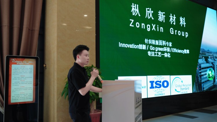 泉州市樅欣新材料科技有限公司代表向與會嘉賓展示了24針超細(xì)飛織、繭科技TPU水繡(特種繡)、特殊絞棕梭織、緯編鞋面等多種產(chǎn)品的各項(xiàng)參數(shù)與功能特點(diǎn)。