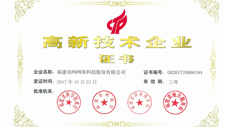 日前,福建訊網網絡科技股份有限公司(簡稱:訊網網絡,股票代碼:839825)通過國家《高新技術企業認定管理辦法》和《高新技術企業認定管理工作指引》的相關規定,參加復審,再次獲得了國家級高新技術企業認證,為公司的研發創新實力的提升,再添榮耀。